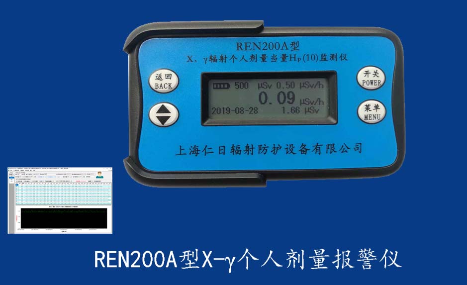 REN200型X、γ個(gè)人劑量報(bào)警儀(又叫X、γ輻射個(gè)人劑量當(dāng)量HP(10)監(jiān)測(cè)儀)內(nèi)置高靈敏度蓋格計(jì)數(shù)管為探測(cè)器,主要用來(lái)監(jiān)測(cè)各種放射性工作場(chǎng)所的X、γ以及硬β射線的輻射,具有響應(yīng)快,測(cè)量范圍寬的特點(diǎn)。能顯示工作場(chǎng)所的劑量當(dāng)量率和累積劑量,更換電池時(shí),日期及累積數(shù)據(jù)能永久保存。可選配RenRiPersonal個(gè)人劑量管理軟件,該軟件可存儲(chǔ)多個(gè)人的歷史數(shù)據(jù),能記錄日累積、月累積、年累積、輻照時(shí)長(zhǎng)、計(jì)算平均劑量率、扣除或不扣除本底輻射,且以文字和圖譜的方式展現(xiàn)數(shù)據(jù)。廣泛應(yīng)用于核電站、加速器、鋼鐵、化工、同位素應(yīng)用、醫(yī)院、工業(yè)X、γ無(wú)損探傷、放射醫(yī)療、鈷源治療、γ輻照、放射
